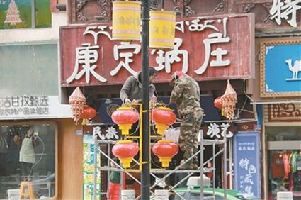 絢麗多彩的背后是工人們的辛苦付出。據(jù)悉,為了在春節(jié)期間營造出歡樂、祥和、幸福的節(jié)日氛圍,從去年12月底開始,康定市市政公司安排的40余名工人已連續(xù)工作半個多月,現(xiàn)已完成所有布置?!斑@是今年最后一次出工了,完成這次任務(wù),我們也要回家過年啦!”負責此次燈籠安裝的余元強說。