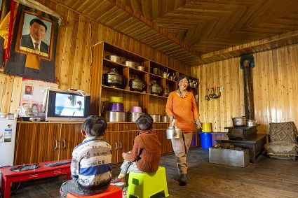 觀看圖片展的贈科小學(xué)退休老校長阿伙布老人一邊指著贈科鄉(xiāng)安卡村的全貌圖,一邊自豪地給身邊觀展的人群說:“這是我的家鄉(xiāng),在六七十年代的時候,村里房子是沒有樓層的土木房。現(xiàn)在,村里的人居環(huán)境有了很大改善,房子也修得很漂亮??吹郊亦l(xiāng)的變化,我非常高興。”