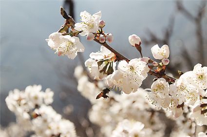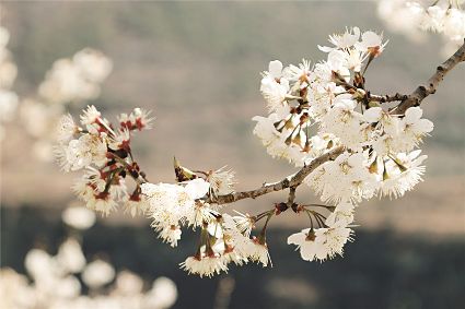 說起三月瀘定的美,可不止油菜花。在冷磧鎮(zhèn),純白如雪的櫻花也競相開放。它們花團(tuán)錦簇,映著藍(lán)天,頗為壯觀。櫻桃花林中,簇簇花兒綴滿枝頭,潔白若仙。微風(fēng)吹過,滿樹搖曳,像極了千萬個(gè)精靈在春色中舞蹈。