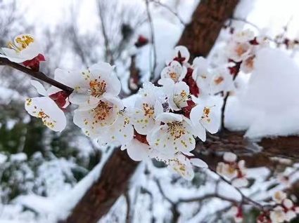 雪落天晴,干凈靚麗的高原小城別有一番風(fēng)韻:藍(lán)天、綠樹、紅杏、金黃的草地、晶瑩的雪花……一派高原雪景風(fēng)光,就這樣淋漓盡致地展現(xiàn)在眼前。