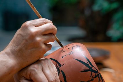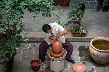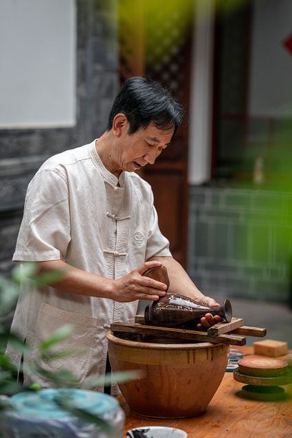 生活在云南省紅河哈尼族彝族自治州建水縣碗窯村的徐榮洪是當(dāng)?shù)匦旒腋G的第五代制陶藝人,也是非遺建水紫陶燒制技藝的傳承人。 泥料制備、拉坯造型、濕坯裝飾、雕刻填泥、高溫?zé)?、無(wú)釉磨光……要想做出精良的紫陶工藝品,每個(gè)流程都需要潛心鉆研。“制作技藝環(huán)環(huán)相扣,某一道工序出現(xiàn)紕漏,燒出來(lái)就是瑕疵品?!?徐榮洪拿起刻刀,對(duì)陶坯表面開(kāi)始進(jìn)行雕刻。 今年57歲的徐榮洪小時(shí)候就跟著長(zhǎng)輩上山挖陶泥,多年來(lái)堅(jiān)持鉆研建水紫陶的制作技藝。 徐榮洪介紹說(shuō),作為紫陶藝人,以陶為紙,根據(jù)器型將不同的文化與藝術(shù)形式注入其中,使其具有無(wú)限活力。非遺文化閃爍著人類智慧的光芒,也承載著人們心底的情思鄉(xiāng)愁。