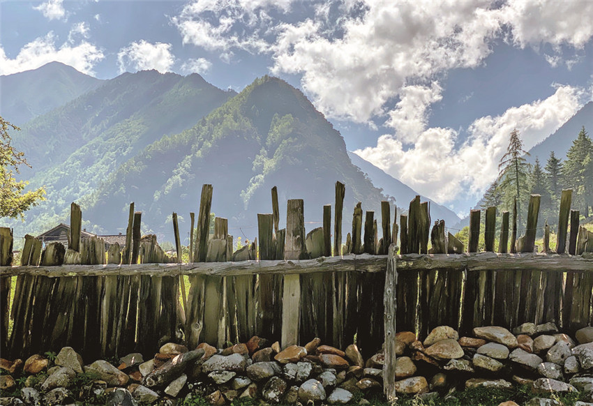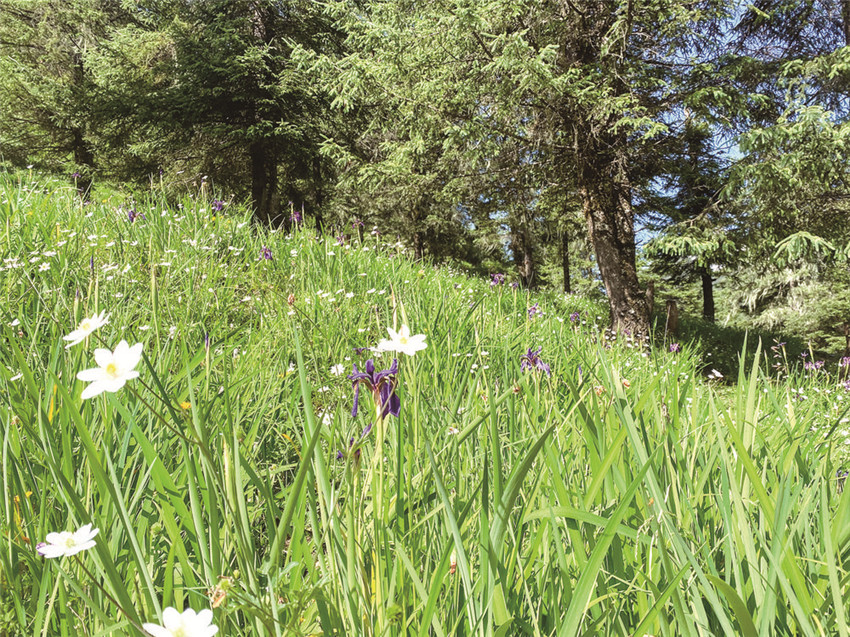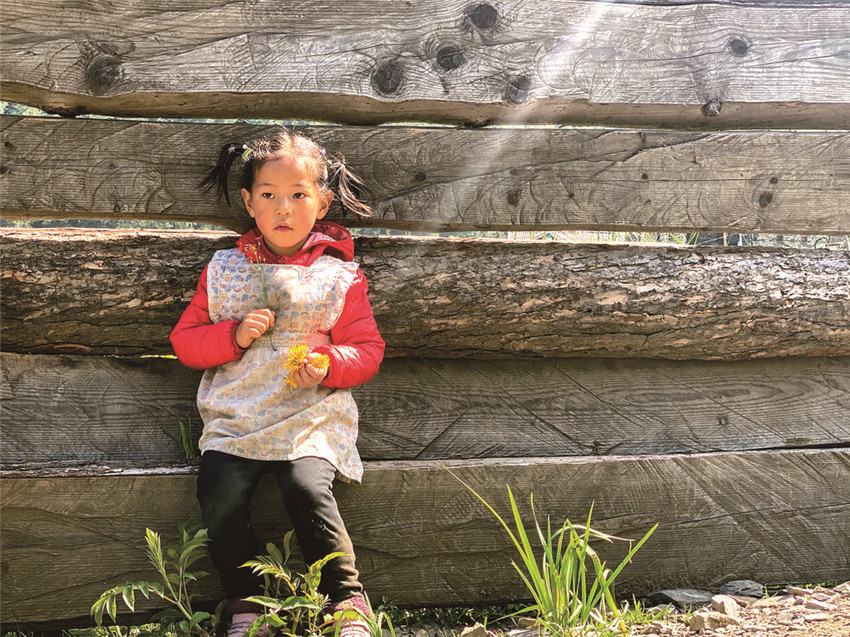 女人們相約去后山林中撿野生菌。一位穿氆氌袍子的老牧人領(lǐng)著小孫女,還有一只勇猛地藏獒,在石屋后方的草坪上等太陽(yáng)。微風(fēng)輕拂著他們腳邊盛開(kāi)的鳶尾花,細(xì)聽(tīng),那鈴鐺般的花朵搖響嘶嘶桑桑的音樂(lè)。小女孩在花叢中那條伸向牧場(chǎng)的小路上撿拾白色的小石子,裝入衣包里,鼓脹后就取出一枚枚投向花叢中的黑蝴蝶,令它的世界撲朔迷離。老牧人瞇縫著眼睛,翻轉(zhuǎn)粗糙的手心手背,仿佛要使它也開(kāi)出鳶尾花朵來(lái)。我朝他們走去,小女孩朝我跑來(lái),撲進(jìn)我的懷中喊我阿尺。我撫摸她頭頂上的卷發(fā),像撫摸著一只乖覺(jué)的小鹿。