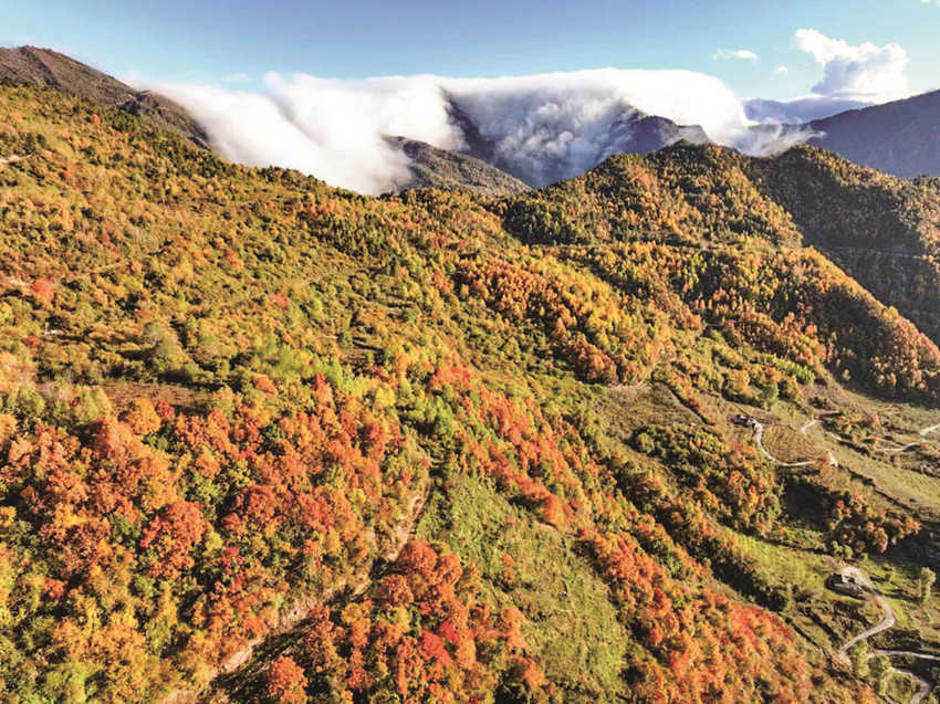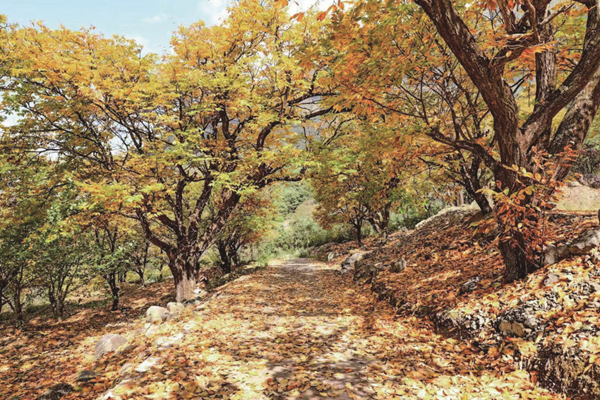 冷風肅起,大雁南飛,銀杏樹開始了一年中最華麗的篇章,風兒吹過,銀杏樹葉紛紛揚揚地,從樹上飄落下來,宛如無數只金色的蝴蝶,在空中漫天飛舞?!八厣鷿狻?,滿山層林盡染,演繹著另一番亮麗。多種色彩交織在一起,如同一幅流動的美麗畫卷,使得這個季節(jié)更有韻味。