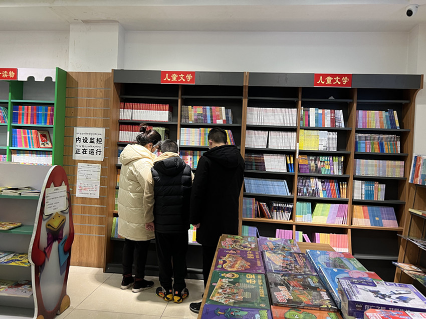 在新華書店,前來購書的小朋友們?cè)诩议L的陪伴下,正在精心挑選喜愛的圖書,恬淡幸福喜悅寫在臉上。