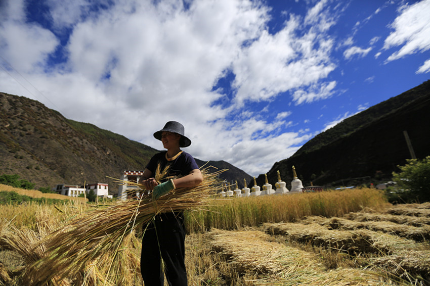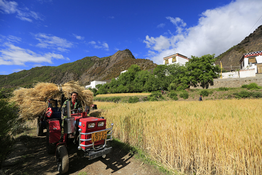 風(fēng)吹麥田千層浪,麥穗飄香農(nóng)家忙。夏至已到,我州巴塘、鄉(xiāng)城、丹巴等地的小麥陸續(xù)進(jìn)入成熟期。小麥陸續(xù)開鐮收割,廣大農(nóng)民群眾搶抓天氣晴好的有利時機(jī),加緊搶收小麥,確保夏糧豐收、顆粒歸倉。