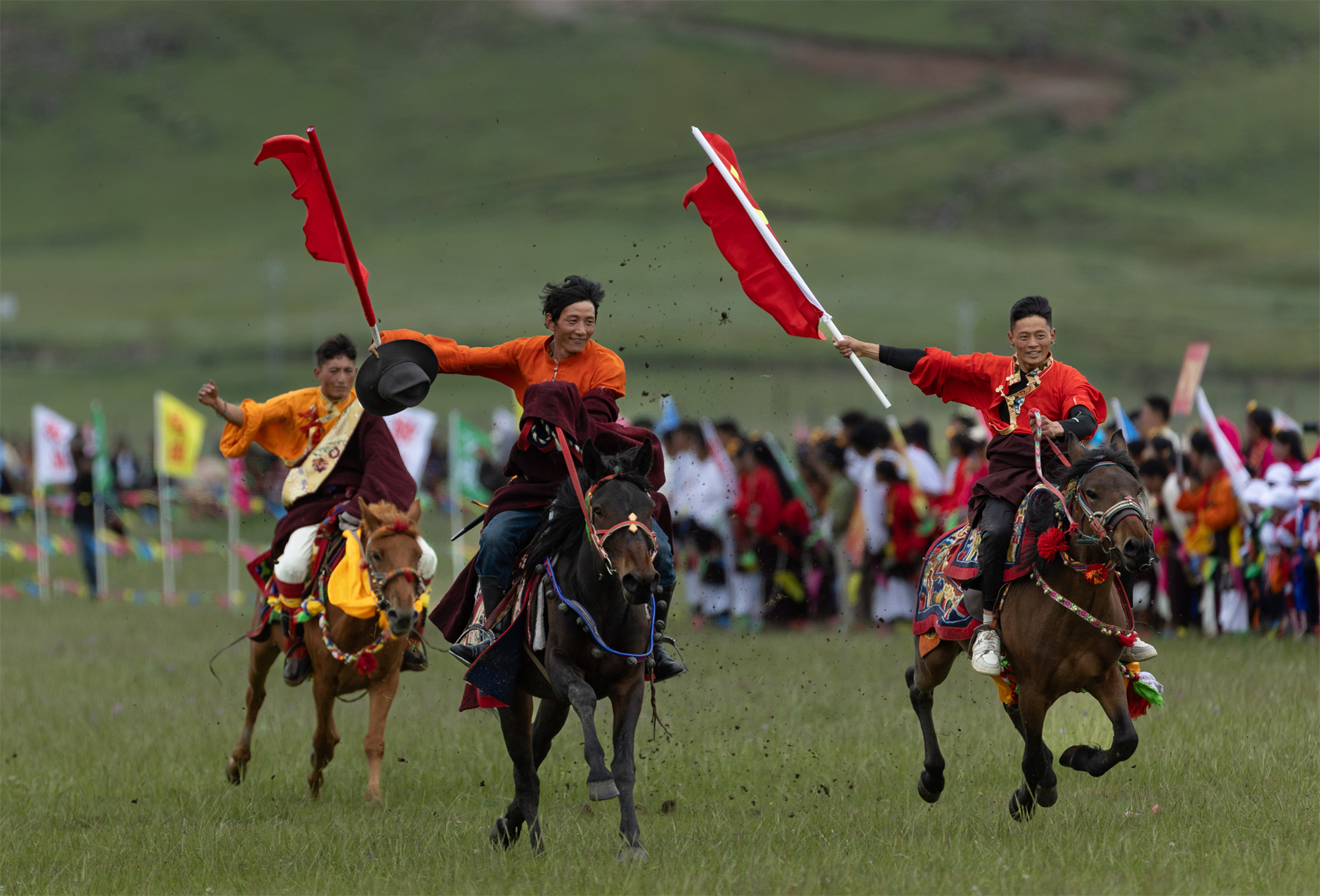 7月27日,四川省甘孜藏族自治州白玉縣第二屆“盛德白玉·草原最?!编l(xiāng)村民俗文化活動(dòng)在阿察鎮(zhèn)日通草原啟幕。文藝匯演、牦牛選美、擠奶比賽、賽馬等活動(dòng)在接下來兩天里將輪番上演,吸引當(dāng)?shù)啬撩窈捅姸嘤慰颓皝碛^賞。