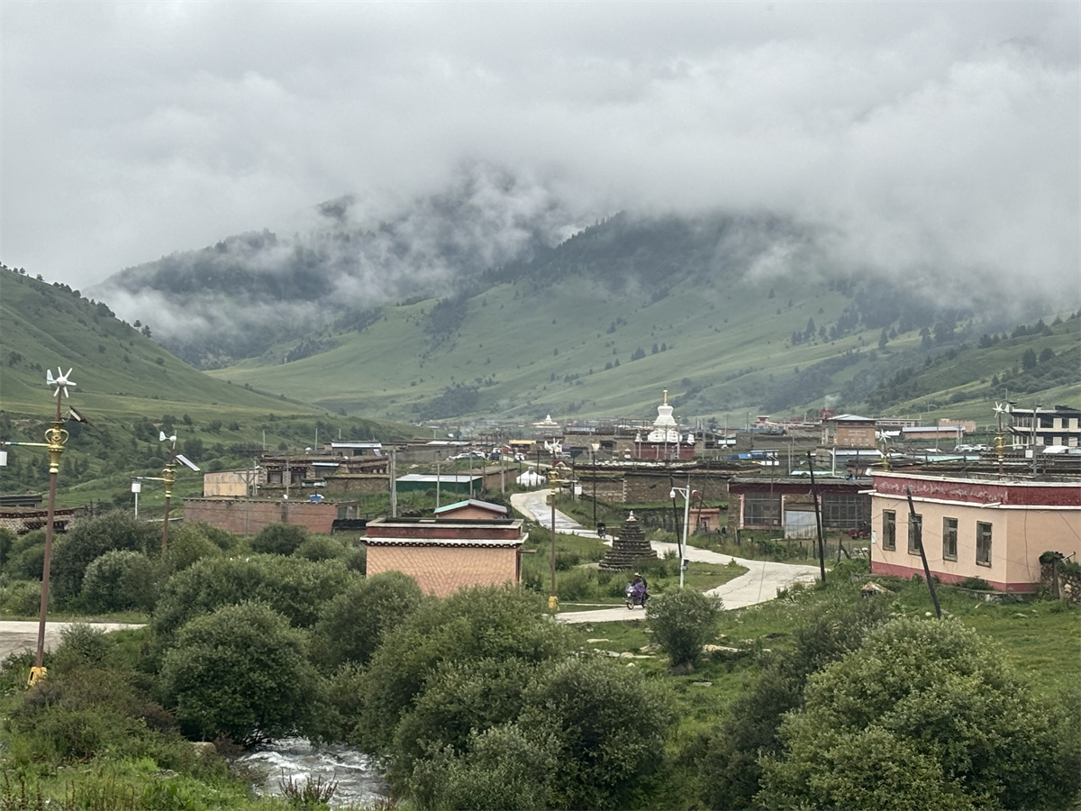 然日卡村是格聶山下一個典型的藏族村莊,因自然景觀優(yōu)美而聞名。站在村前觀景平臺上,能看到以雄奇險峻而著稱的格聶神山。格聶神山位于理塘縣西南部,是四川省甘孜藏族自治州理塘縣境內(nèi)的著名山脈,?它不僅是四川第三高峰,?而且因其獨特的自然景觀和深厚的文化背景,?吸引了眾多旅行者和朝圣者。?格聶神山的地質(zhì)構造和自然景觀極為豐富,?包括冰川、?雪峰、?草原、?沼澤、?瀑布等,?展現(xiàn)了大自然的鬼斧神工和生命的多樣性。?