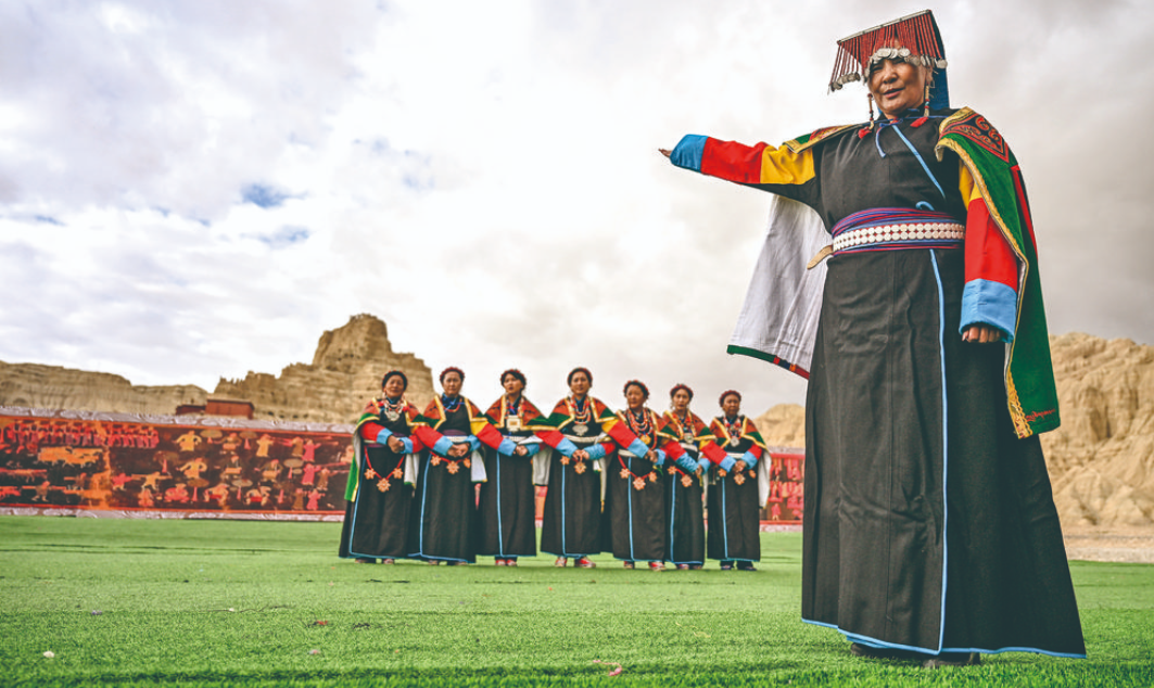 “宣舞”起源于札達縣,是西藏阿里民間傳統(tǒng)舞蹈?!靶琛比诤喜貞?、舞蹈、說唱等主要的藏民族民間藝術(shù),內(nèi)容涵蓋藏民族宗教、禮儀、風俗、節(jié)慶等各方面的內(nèi)容。2008年,“宣舞”入選第二批國家級非物質(zhì)文化遺產(chǎn)名錄。