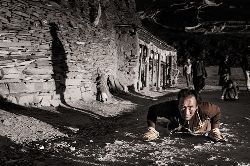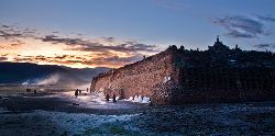 石經(jīng)城位于距石渠縣城呢呷鎮(zhèn)東北約90公里處的阿日扎鄉(xiāng)境內(nèi),坐落在雅礱江支流洛曲河西岸一處兩山相望的草原間,背靠一座平緩、渾圓的山丘,前面是一望無際的草原,由于草原極為遼闊,遠(yuǎn)遠(yuǎn)望去,整座城并不顯得特別雄偉、壯觀,但走近細(xì)看,這座用一塊塊刻滿經(jīng)文和佛像的石片、石塊在漫長歲月中逐漸壘砌起來的石城,所蘊含的厚重與蒼茫,堅韌與神秘,讓我想起荷爾德林所說的“那些四處飄游的分散的力量,都匯聚在一個黃金般的中心”。