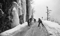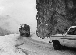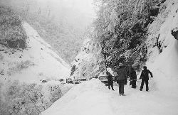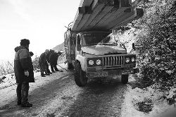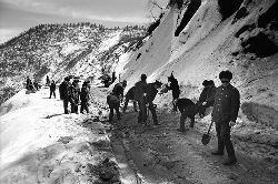 一九九七年十一月二十四日,連續(xù)多日大雪,把整個(gè)二郎山裹得嚴(yán)嚴(yán)實(shí)實(shí),白茫茫一片。陣陣山風(fēng)吹過(guò),大霧就像瀑布一樣,從山頂直往下翻涌?jī)A瀉。 一大早,州交通局打冰除雪排險(xiǎn)的干部職工就從二郎山管理站直奔山埡口。載有防滑砂的大貨車(chē)穿迷霧,繞山梁,向山頂埡口疾馳。由于氣溫太低,霧又大,車(chē)上的擋風(fēng)玻璃很快就結(jié)下了冰,路面打滑非常嚴(yán)重。前面車(chē)輛堵了起來(lái),排險(xiǎn)人員只好下車(chē)步行。 大霧彌漫,能見(jiàn)度很底,陰霾的天空又飄起了紛紛揚(yáng)揚(yáng)的雪花,剌骨的寒風(fēng)陣陣襲來(lái),只聽(tīng)見(jiàn)車(chē)蓬布在風(fēng)中“嗶剝”作響,卻看不見(jiàn)前面到底堵了多少車(chē)。排險(xiǎn)人員只好相互攙扶踩著冰滑的邊路艱難地向行。好不容易來(lái)到堵在最前面的車(chē)子面前。原來(lái)是一輛載著原木的東風(fēng)牌大貨車(chē)側(cè)滑在公路上,把整個(gè)公路堵死了。 局領(lǐng)導(dǎo)當(dāng)即指揮大家用鋼釬、鐵鎬和鋤頭處理冰道,沒(méi)有撮箕,大家借來(lái)加水桶裝運(yùn)冰雪……氣溫仍在急劇下降,剛從雪堆里刨出來(lái)的路,又被結(jié)起一層冰,就像地面上澆上了油,這就是冰雪道上有名的“桐油凌”。 有二位老同志不顧年老體弱,積極參與打冰除雪,一個(gè)在打冰時(shí),被彈起的冰碴把腦門(mén)劃了一個(gè)口子,鮮血直往外冒。有人想幫他包扎,他堅(jiān)決不干,自己就用手帕按住,把帽子向下拉蓋住傷口就算了。血從手帕中浸透出來(lái),與眉毛上的冰凌結(jié)在一起。氣溫太低,冰層太厚,十字鎬每挖一下,多數(shù)情況下也就是挖下一個(gè)白點(diǎn)而已。不一會(huì)兒,另一位老同志已是滿頭大汗,大家勸他休息一下,他卻說(shuō):趁著現(xiàn)在雪不是太大,早點(diǎn)把主道上的冰雪多除點(diǎn),過(guò)往二郎山的車(chē)輛就多一份安全。 排險(xiǎn)人員的手凍紅了,刨冰雪碰傷的指頭還流著鮮血,身上蒸發(fā)的熱氣,把衣領(lǐng)口、袖子口和褲子口結(jié)成了冰,可是,誰(shuí)也沒(méi)有吭一聲。 ……受堵車(chē)輛終于向前開(kāi)動(dòng)了。 風(fēng),越刮越猛,雪,越來(lái)越大。 防滑車(chē)在冰雪道上艱難地向前爬行著,車(chē)箱上面的職工們揮舞的洋鏟向路面撒著防滑砂。一路上風(fēng)絞雪,防滑車(chē)象一頭不聽(tīng)使喚的牛,顛簸、亂竄,好不容易才來(lái)到260(二郎山最險(xiǎn)處),對(duì)這里“桐油凌”路面進(jìn)行重點(diǎn)防滑處理后,防滑車(chē)又返回來(lái),開(kāi)始向山頂進(jìn)發(fā)……風(fēng)雪二郎山上打冰除雪、防滑排險(xiǎn),看似沒(méi)有驚天動(dòng)地的壯舉,身臨其景才知其艱難辛苦。難怪當(dāng)年每每經(jīng)過(guò)二郎山冰天雪地奇險(xiǎn)路段的車(chē),都會(huì)向風(fēng)雪中屹立路邊的交通系統(tǒng)排險(xiǎn)保暢通的職工們鳴笛致敬,風(fēng)雪中的那份情彌足珍貴。 川藏線上的老司機(jī)傳下來(lái)一首傷心的順口溜:“車(chē)過(guò)二郎山,如闖鬼門(mén)關(guān),萬(wàn)幸不翻車(chē),也要凍三天!”其險(xiǎn)峻實(shí)為罕見(jiàn),尤其是途經(jīng)二郎山260(公路公樁)處,曾被淡虎色變的人稱為“鬼招手”的險(xiǎn)路段。 1983年1月3日,有著安全行車(chē)44萬(wàn)公里記錄的一位駕駛員開(kāi)著輛嶄新的東風(fēng)牌貨車(chē),同行還有兩名職工,夜行二郎山,在彌天大霧中神秘地“失蹤”了。十五天后,搜山的人才用望遠(yuǎn)鏡看到260公里路樁處的山崖下,有一塊汽車(chē)破篷布掛在樹(shù)枝,猶如招魂的凄厲幌幡在冷風(fēng)中招搖晃動(dòng)。鋼纜繩吊著搜山的人下到崖下400米深處的谷底。扒開(kāi)一座座雪堆,叫人汗毛倒豎:雪堆下,盡是廢大梁、爛車(chē)廂、銹車(chē)頭和支離破碎的汽車(chē),足有一個(gè)汽車(chē)連!一輛不知埋了多久的卡車(chē)廂里牛肉已腐爛,駕駛室里坐著三具發(fā)黑的僵尸……其狀慘不忍睹!