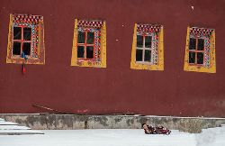 冬季的色達(dá),常常被皚皚白雪覆蓋,民居、帳篷、寺院、經(jīng)幡、牦牛點綴期間,美麗迷人。