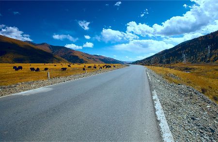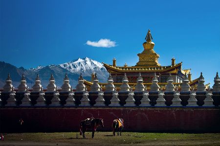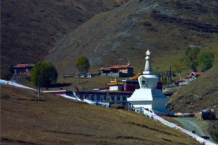 “塔公”,藏語意為“菩薩喜歡的地方”。相傳文成公主進(jìn)藏時(shí),途經(jīng)此地,隨身攜帶的釋迦牟尼佛像忽然開口,示意愿留在此地。眾人立即就地按照佛像原貌復(fù)制一尊留下。從此,高原上有了被稱為“小大昭寺”的塔公寺。塔公草原也因此而得名。自康定沿川藏線西行,翻越折多山,過新都橋后北行不多時(shí)便是塔公了。沿線的河流、草原、森林、山體、寺廟、藏寨構(gòu)成了濃郁的甘藏風(fēng)情。高聳的雅拉雪山、起伏的草原、成群的牛羊和草原上金碧輝煌的“木雅經(jīng)塔”讓人留連忘返。