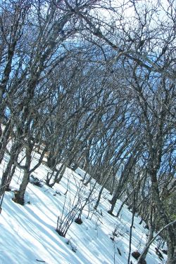 似乎是在快接近馬鞍山山脊的時候,坡度才開始變小的。這時,積雪也比較多了。