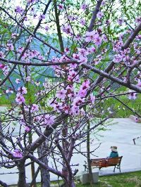 走在康定街頭,到處是瑰麗繽紛,成為街頭靚麗的風(fēng)景線。走過樹下,撩人心扉,偶爾抬頭望望,或許你就能發(fā)現(xiàn)它的俏麗身姿。折多河沿岸,遍植了柳樹,眼睛放開在河的兩岸,都被春意的畫筆輕巧地抹了。輕輕,有如是女兒給眉的描,給唇的畫,給臉龐添的脂粉,很不經(jīng)意,但又那么刻意、認(rèn)真,不由得你心頭不溫婉起來,蕩起暖暖的一種氣息,和了柳梢上輕綠的飄動(dòng),直把那柳做了佳麗等待的那回眸一笑。