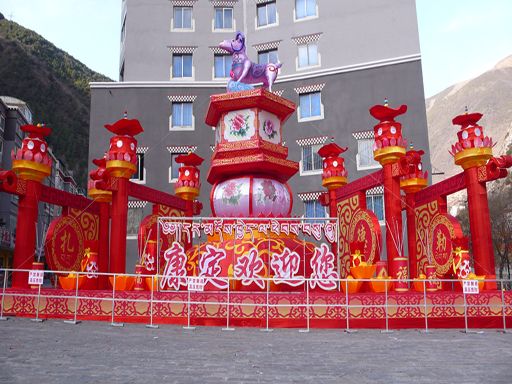 除了購買年貨的人群外,今年康定街頭的燈飾也讓人耳目一新。在康定東關(guān)入城大道、情歌廣場、情歌大廈和將軍橋等地,一組組燈飾格外引人注目。到了夜晚,節(jié)日的康定城更是流光溢彩、美不勝收。