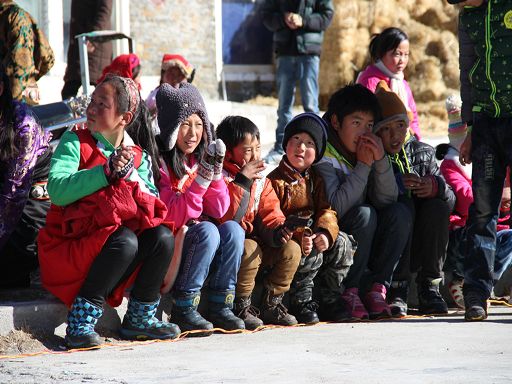 中午,高原的陽(yáng)光暖洋洋的,有了空閑時(shí)間的村民們都來(lái)到活動(dòng)中心,一邊曬太陽(yáng),一邊觀看孩子們的表演。