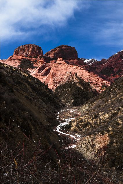或許,新龍丹霞就是在守望這片秘境。綿延三十多公里的紅色,以新龍縣銀多鄉(xiāng)阿色一村為中心,凝固千姿百態(tài),隆起峻拔偉岸??瓶嫉目匆娏说は嫉孛簿坝^要素、發(fā)育程度、組合方式,轉(zhuǎn)神山的信眾看見了觀音、金剛、佛塔、海螺,旅游的看見了神奇、壯觀和文化……