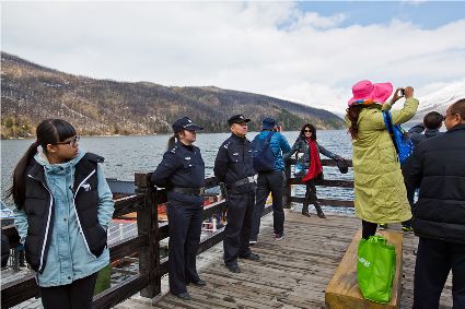 為確保各地游客“五一”小長假期間在康定游得開心、游得放心,維護(hù)旅游城市的良好形象,康定市公安局精心部署,周密安排,科學(xué)布警,嚴(yán)密各景點(diǎn)治安防控,為游客提供良好的治安環(huán)境,用橄欖綠、藏藍(lán)色描繪出一道靚麗的風(fēng)景線。