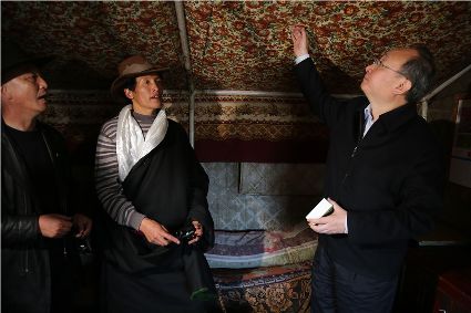 尹力在爐霍縣蝦拉沱村調(diào)研。