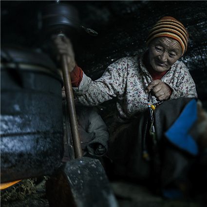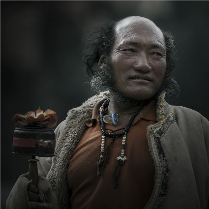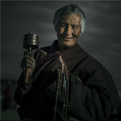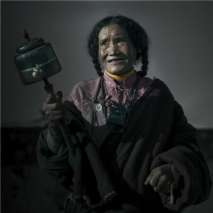 每當我手持相機時,對他們始終懷有一種敬畏,我捕捉到他們眼神里流露出虔誠。看著經(jīng)筒上“甲多”的飛轉(zhuǎn),我陶醉了,醉在那轉(zhuǎn)經(jīng)筒的旋轉(zhuǎn)舞動,醉在那轉(zhuǎn)經(jīng)筒傳誦的故事,醉在那一張張手持轉(zhuǎn)經(jīng)筒的面孔,還有,還有因祈禱音符助推而從未停止的轉(zhuǎn)經(jīng)筒……