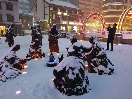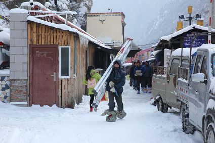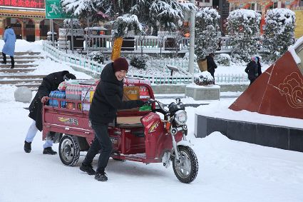 “風(fēng)雨送春歸,飛雪迎春到。已是懸崖百丈冰,猶有花枝俏?!?月4日傍晚,大片大片的雪花,從昏暗的天空中紛紛揚揚飄落下來。霎時間,山川、河流、城市,全都籠罩在白蒙蒙的大雪之中。黃昏的雪,下得深切切的,好象有千絲萬縷的情緒似的,又像海水一般洶涌,能夠淹沒一切,還有一絲揭開藏頭露尾般的裸露感。雪花形態(tài)萬千、晶瑩透亮,好象出征的戰(zhàn)士,披著銀色的盔甲,又像是一片片白色的戰(zhàn)帆在遠(yuǎn)航…… 落光了葉子的柳樹上,掛滿了毛茸茸、亮晶晶的銀條兒;冬夏常青的松樹和柏樹,堆滿了蓬松松、沉甸甸的雪球。那一片雪花在空中舞動著各種姿勢,或飛翔,或盤旋,或直直地快速墜落,鋪落在地上。“忽如一夜春風(fēng)來,千樹萬樹梨花開”——這是雪的燦爛;一場瑞雪,扮美了康定,年味籠罩的康定城,嫵媚妖嬈。無論是背水姑娘、有著年味兒的將軍橋,還是大紅燈籠高高掛的康定門,都在雪后別有一番景致。與美景合影、和朋友玩雪都是最佳選擇。在風(fēng)雪中,交警不畏嚴(yán)寒默默堅守崗位 ,指揮交通疏堵保暢。他們的身影在皚皚風(fēng)雪路上站成一道道最美的風(fēng)景,溫暖了康定。從早上六點開始,康定的環(huán)衛(wèi)工就迎著刺骨的寒風(fēng),開始了除冰雪保通暢的行動,在積雪覆蓋的康定城,早起的商販樂呵呵地做起了買賣;民工迎著雪后的寒風(fēng)出門務(wù)工,他們是最可敬的人。