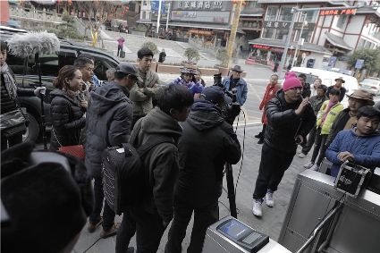 在瀘定縣城,陳軍生帶著陶琳和驢友們,站在熱鬧的紀念廣場上。劉夏正在給游客們介紹瀘定橋23烈士的雕像。在瀘定橋頭,陶琳帶領著游客們在橋上照相,充滿著歡快的氛圍。經過一段時間的游覽,當天的游覽結束了。劉夏和陶琳一起舉起牌子,叫喊著:“軍生客棧,帶您暢游牛背山、嵐安古鎮(zhèn),以及瀘定橋紅色旅游專線!”的宣傳口號,引來了許多游客。