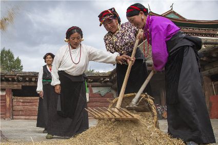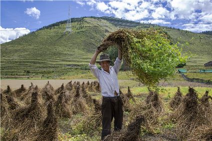 康定市姑咱鎮(zhèn)達杠村村民李翠軍一邊采摘著蘋果,一邊喜悅地告訴記者,達杠所產(chǎn)的蘋果個頭大、色澤好、吃味好、耐儲藏,到目前,全村蘋果種植面積800多畝,去年蘋果產(chǎn)量160萬斤,今年雨水好,蘋果產(chǎn)量將猛增到200萬斤以上。目前,村子里蘋果種植大戶家庭年收入過10萬元的就有20多戶??刀ㄊ袑⑦_杠村打造成川藏觀光農(nóng)業(yè)第一村。按照規(guī)劃,村里會進一步擴大蘋果種植面積,以蘋果利用為核心,發(fā)展“春賞花、夏攝影、秋摘果、冬體驗”四季觀光農(nóng)業(yè)產(chǎn)業(yè)。五谷豐登六畜興旺,甘孜高原共慶豐收。農(nóng)民豐收節(jié),它既是億萬農(nóng)民慶豐收、曬豐收的節(jié)日,也是全社會享豐收、助增收的節(jié)日;既寄托著農(nóng)民的追求、農(nóng)民的希冀,也承載著全體中華兒女的深情與追憶;中國農(nóng)民豐收節(jié),農(nóng)牧民收獲的不只是甜蜜蜜的果實,鼓起的不只是沉甸甸的荷包,更是滿滿的榮譽感、幸福感、獲得感!