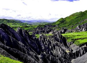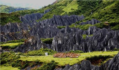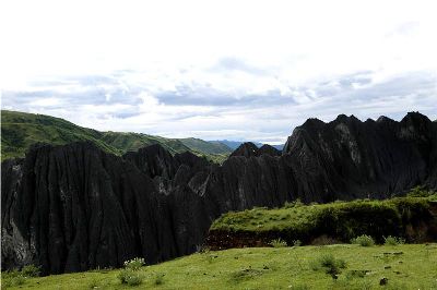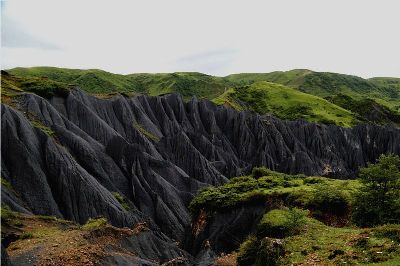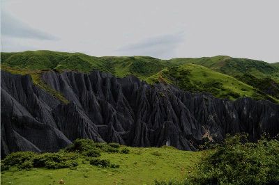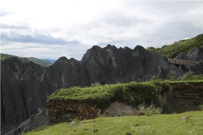 墨石公園,是中國唯一高原石林景觀,被譽(yù)為“中國最美景觀大道第八美 ”。受第四紀(jì)新構(gòu)造運(yùn)動(dòng)影響,隨著青藏高原的隆起,鮮水河斷裂帶中的巖石受到擠壓、剪切、破碎、糜化,形成糜棱巖石林。石林含丐鹽,受空氣濕度影響,干燥季節(jié)呈淺灰色、淺藍(lán)色,濕潤(rùn)季節(jié)呈滄黑色,因此又稱之為變色石林。