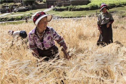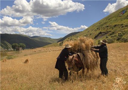 八月起迄,當你翻越西出爐關第一隘口的折多山,下山十里就會看到山地田野里成熟的青稞、麥子象展開一頁頁金黃的詩篇涌進眼里。那大地山坡起伏驛動的金箔等待著走進主人的碉樓……這個時候,正是秋收的開始。