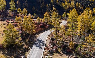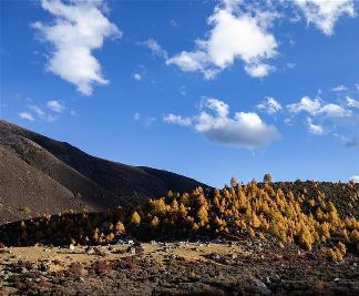 深秋時(shí)節(jié),晴空、群山、秋葉在高原清澈的天光下勾勒出川西鄉(xiāng)城縣一幅幅美麗畫卷。