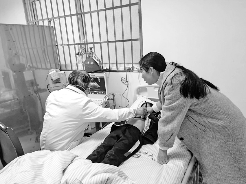 圖為醫(yī)生正在為先心病患者進行檢查。