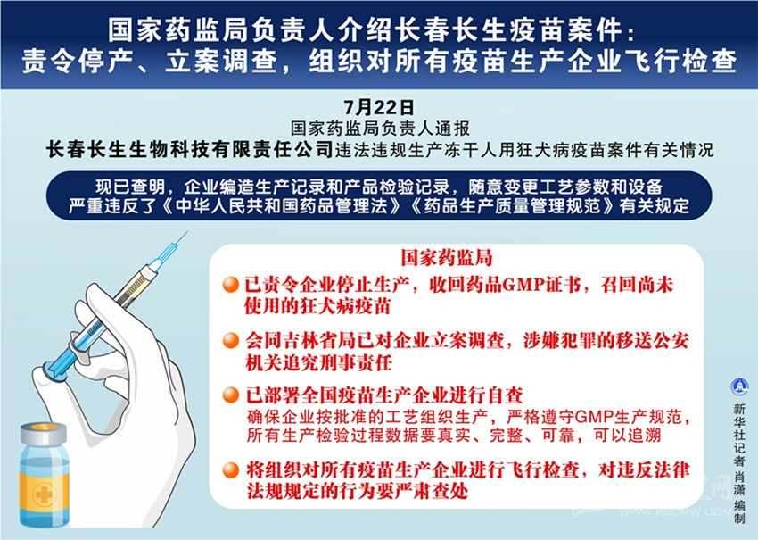 國家藥監(jiān)局通報長春長生違法違規(guī)生產(chǎn)狂犬病疫苗案件有關(guān)情況