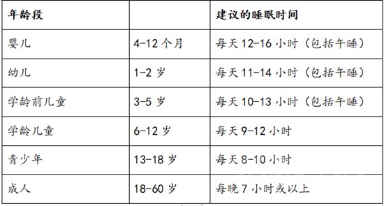 隨著年齡的增長,每個(gè)人需要的睡眠時(shí)間也會(huì)發(fā)生變化。美國睡眠醫(yī)學(xué)會(huì)和中國睡眠研究會(huì)建議: