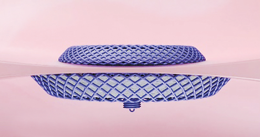 既然有了“孔”,就得想辦法“堵”。生物可降解卵圓孔封堵器由一大一小2個內(nèi)凹狀的“圓盤”連接在一起,細(xì)看呈蜂窩狀,就像一個“塞子”,牢牢扣住左右心房的“墻壁”。