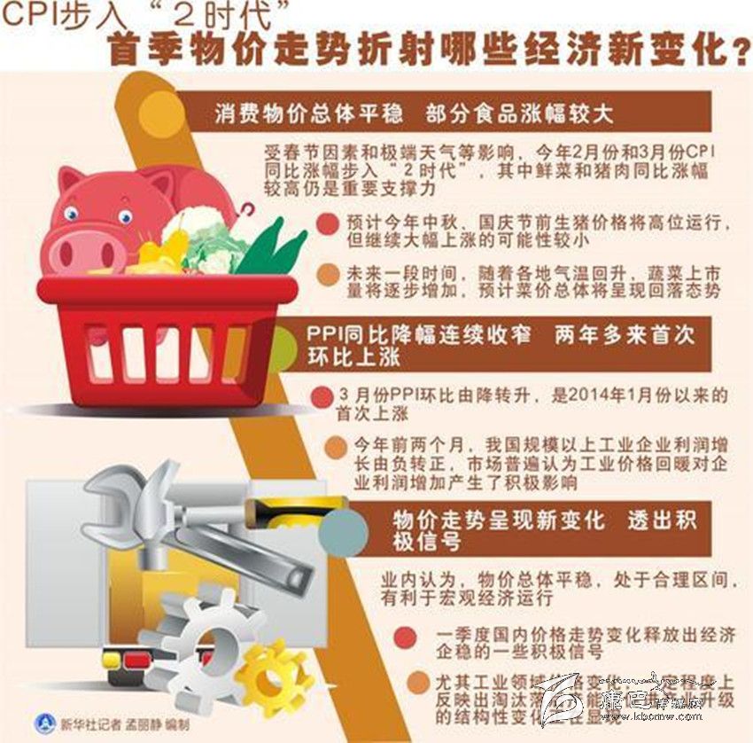 面對(duì)較大的經(jīng)濟(jì)下行壓力,物價(jià)穩(wěn)是當(dāng)前我國(guó)經(jīng)濟(jì)運(yùn)行的重要特征。去年我國(guó)CPI同比漲幅始終維持在0.8%至2%的區(qū)間內(nèi)。今年一季度,CPI同比漲幅步入“2時(shí)代”。業(yè)內(nèi)認(rèn)為,“開局季”的物價(jià)走勢(shì)向外界透出當(dāng)前宏觀經(jīng)濟(jì)蘊(yùn)含的一些暖意。