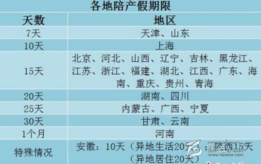 29省份陪產(chǎn)假一覽。