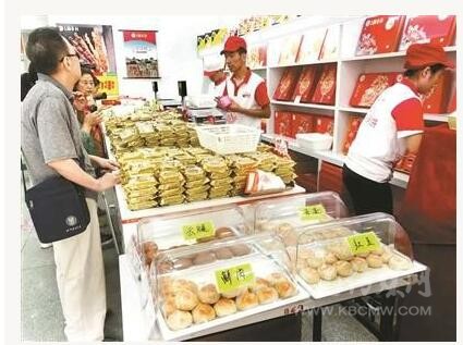 北京稻香村面點師現場烘烤月餅受到歡迎。
