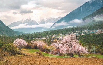 西藏林芝高山云海映襯下的桃花林,向世人展示著不一樣的春天。江舟攝