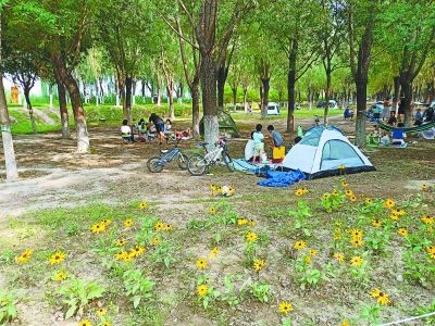 27日,端午小長假最后一天,在大運河森林公園露營區(qū),市民在保持安全距離的前提下,支起帳篷,休閑度假。