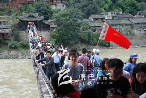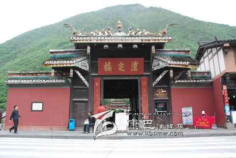 瀘定橋始建于清康熙44年 (1705年),次年五月竣工,康熙御筆題名“瀘定橋”。橋身共由13根鐵鏈組成,其中底鏈九根,扶手四根。橋東西兩端各有橋臺(tái)一座,西端觀音閣下有康熙題寫之《瀘定橋》石碑,橋東有《御制瀘定橋碑記》,瀘定橋是大渡河上第一座穩(wěn)固的大鐵索橋。1935年中國(guó)工農(nóng)紅軍晝夜行軍240里,英勇飛奪瀘定橋,打開(kāi)了北上抗日的通道,“十三根鐵鏈托起了一個(gè)共和國(guó)”,毛澤東同志為此寫下了“大渡橋橫鐵索寒”的壯麗詩(shī)句,瀘定橋自此名揚(yáng)四海,成為中國(guó)紅色第一橋。為紀(jì)念紅軍飛奪瀘定橋這一壯舉和奇跡,于1985年在沙壩建立了“紅軍飛奪瀘定橋紀(jì)念館”和紀(jì)念碑。紅軍飛奪瀘定橋紀(jì)念碑由鄧小平同志題寫碑名,聶榮臻元帥題寫碑文。紅軍飛奪瀘定橋紀(jì)念館收集了紅軍飛奪瀘定橋時(shí)用過(guò)的門板、槍、炮、紅軍的旗幟、文件箱、信件證明、標(biāo)語(yǔ)、戰(zhàn)報(bào)、手雷、馬刀等珍貴文物110余件以及177幅歷史照片。瀘定橋是全國(guó)首批重點(diǎn)文物保護(hù)單位,是國(guó)家重點(diǎn)培育的 “紅色旅游區(qū)”、重點(diǎn)組織規(guī)劃的 “紅色旅游精品線路”和重點(diǎn)建設(shè)的 “紅色旅游經(jīng)典景區(qū)”。