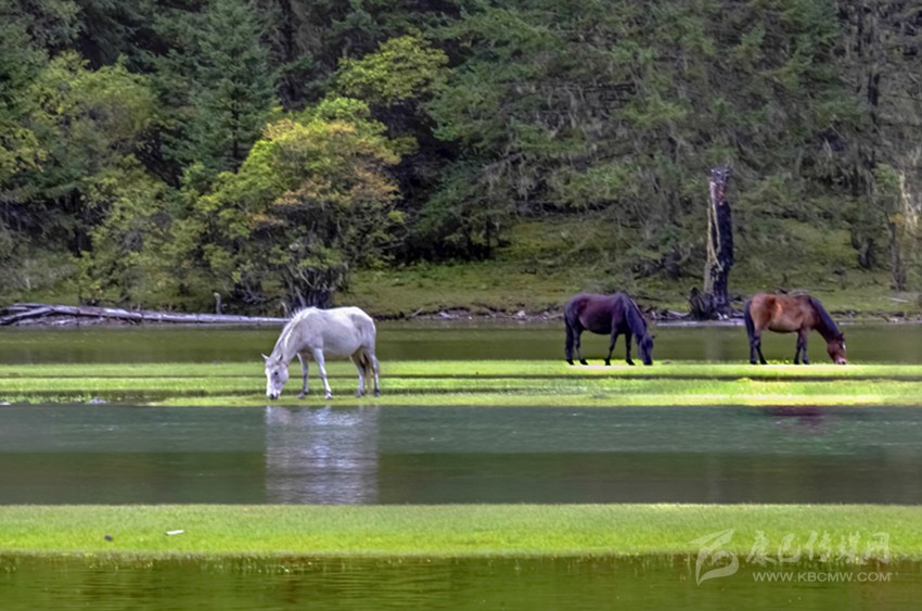 木格措融高山湖泊、原始森林、雪山草原、溪流疊瀑為一體,一派原始古樸而幽靜的自然風(fēng)光,恍如置身于“瑤池仙境”。