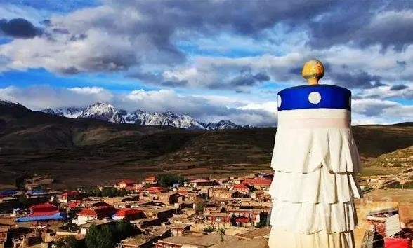 沿著甘孜縣城門(mén)向東南一望,一座37米高的大寶塔便呈現(xiàn)在你的眼前,寶塔其底三層寶座均北京天壇祈年殿座底比列大小而建。雄偉壯觀。