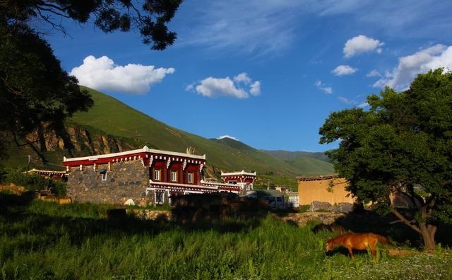 走進(jìn)這座別致的高原城市,首先呈現(xiàn)在你面前的就是那鱗次櫛比的藏式民居。這些民居外表主要由棕白兩色構(gòu)成,白色的屋頂,白色的主墻,木結(jié)構(gòu)處多用棕色顏料染涂,其間配以紅色、藍(lán)色圖案,在藍(lán)天、白云、青山、綠水的輝映下,仿佛幻化成妙不可言的積木圖案。這里的民居修得美輪美奐。如果不是親眼見到,還一定會認(rèn)為這令人眩目的房屋是夢境。這就是道孚民居,被譽(yù)為散落人間的仙境皇宮。