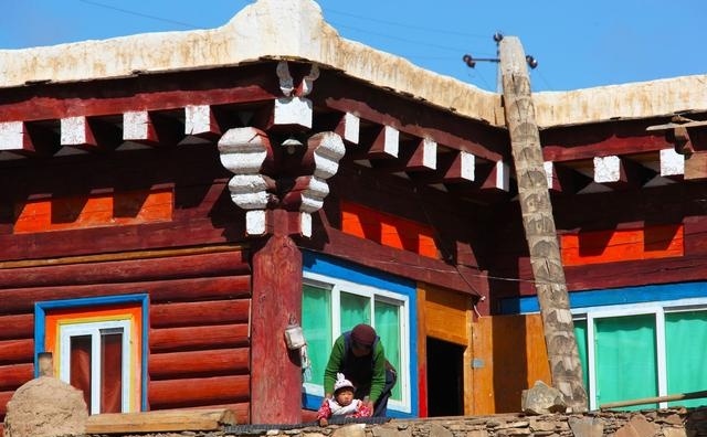 民居的基礎(chǔ)多為長方形,二樓呈L型、凹型或回型。建筑的內(nèi)層結(jié)構(gòu)均以木材料為唯一的建筑材料。整座房屋用“棒柯”、“棒勒”裝修成主人或客人的臥室、儲藏室、經(jīng)堂、客廳(有的分設(shè)漢式和藏式兩廳)、廚房、走廊、陽臺、廁所。陽臺外圍墻上均建小型熏煙臺,屋頂有頂幡塔。頂蓋用樺樹皮或硬雜木條墊底,再鋪“阿嘎土”而成,日曬雨淋絕不漏水,經(jīng)久耐用。屋架門窗外表裸露部分,多以油漆或自制有色土染色,做到防腐防蛀美觀大方。一般而言,道孚民居的大框架,費(fèi)不了多少工時(shí)。當(dāng)建房的材料備齊后,主人就請喇嘛打卦,擇一良辰吉日動工。