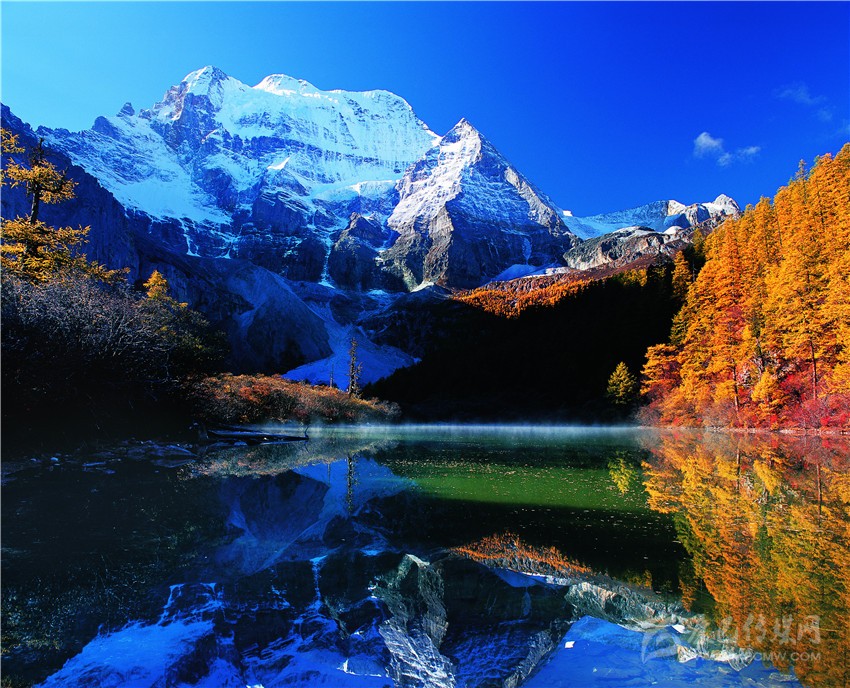 藏語(yǔ)意為:“文殊菩薩”,為“三怙主”雪山的南峰,海拔高度為5958米,在佛教中排在“三怙主”雪山之首。文殊菩薩在佛教中是智慧的化身,雪峰像菩薩師利用手中的智慧之語(yǔ)直指蒼穹,冰晶玉潔的央邁勇傲然于天地之間。一九二八年,洛克先生在云南與稻城毗鄰的群山重嶺中,遙望見(jiàn)了央邁勇,被她圣潔,高貴的氣質(zhì)折服,在他的日記中寫(xiě)到“她(央邁勇)是我見(jiàn)到世界上最美的山峰?!?/p>