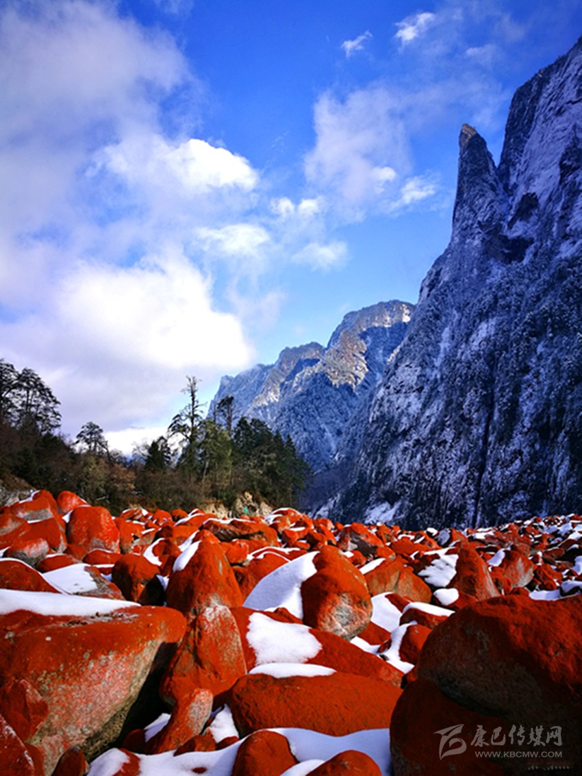 熾熱的紅石輝映著眩目的雪凇,壯麗的美景攝人心魄,令人沉醉!