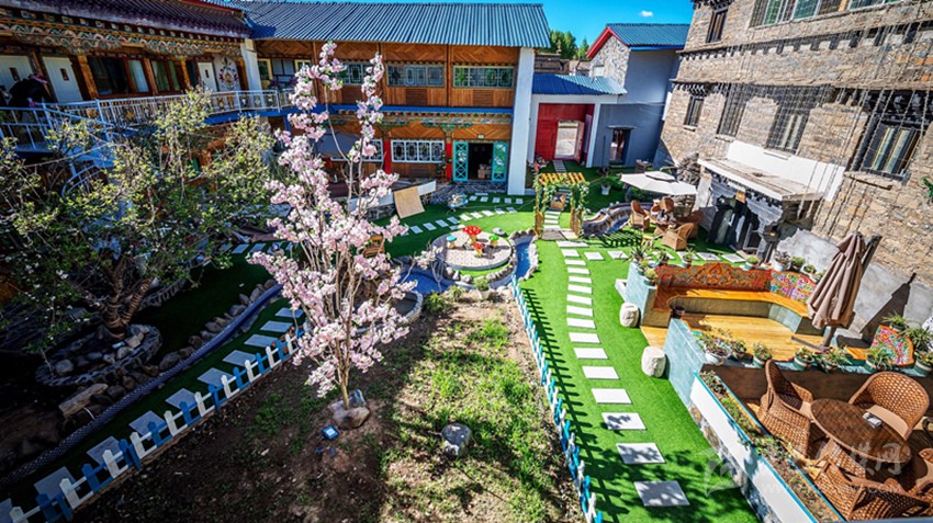 “我們的酒店主打‘民宿牌’。這座院子是稻城唯一一家四合院,始建于1961年,有著60多年歷史了,房子本身就是一個文化符號。”石雅琴告訴記者,酒店有32間房,基礎(chǔ)設(shè)施齊備,每間房間都有供氧設(shè)備、地暖、溫泉。但最讓石雅琴驕傲的是整個酒店酒店是結(jié)合稻城亞丁自然優(yōu)勢及獨特的藏文化而改造的特色文化鄉(xiāng)居,體現(xiàn)出濃郁的民宿味。記者看到,一扇精雕細(xì)琢的藏式大門透著濃濃民族味,走進院子,小徑通幽,花木繁榮,綠植盎然?;乩韧ㄍ?,步入房間,稻城風(fēng)光躍然于墻,富有民族特色的床品更是讓你一下感受到藏文化的親切融入。