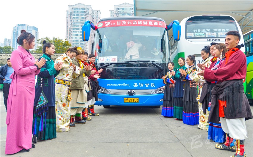 景區(qū)直通車授牌儀式和自駕游車隊授牌儀式也是本次推介會的亮點。兩項儀式旨在進一步方便廣大游客到九龍旅游,并開啟成都直通九龍旅游及運輸融合發(fā)展的歷史征程?,F(xiàn)場,貼有“穿越藏彝走廊,體驗民俗風(fēng)情”和“甘孜九龍旅游直通車”車標(biāo)的汽車引得不少人注目,有的還當(dāng)即向工作人員咨詢票價、路線。