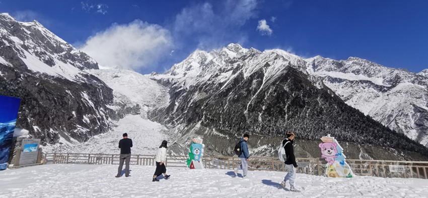 “前天從網(wǎng)上看到海螺溝景區(qū)即將開放的信息,別提多帶勁兒了。這次疫情發(fā)生就一直在家呆著,悶太久了,就想著疫情可控可防的時(shí)候,一定要來川西走走,剛好海螺溝離成都車程近,網(wǎng)絡(luò)風(fēng)評(píng)也是有口皆碑的?!边h(yuǎn)道而來的寧波游客吳先生目之所及盡是玉樹瓊枝、銀裝素裹的雪原冰川風(fēng)光,激動(dòng)不已地說:“透透氣、玩玩雪、泡泡湯,回歸自然的感覺真太好了!”