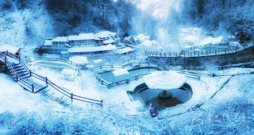 溝內(nèi)蘊藏有大流量沸熱溫冷礦泉,冰天雪地里把身體放在暖暖的溫泉中,眼前浮現(xiàn)的就是冰山美景,完全會顛覆你對生活的美好想象。